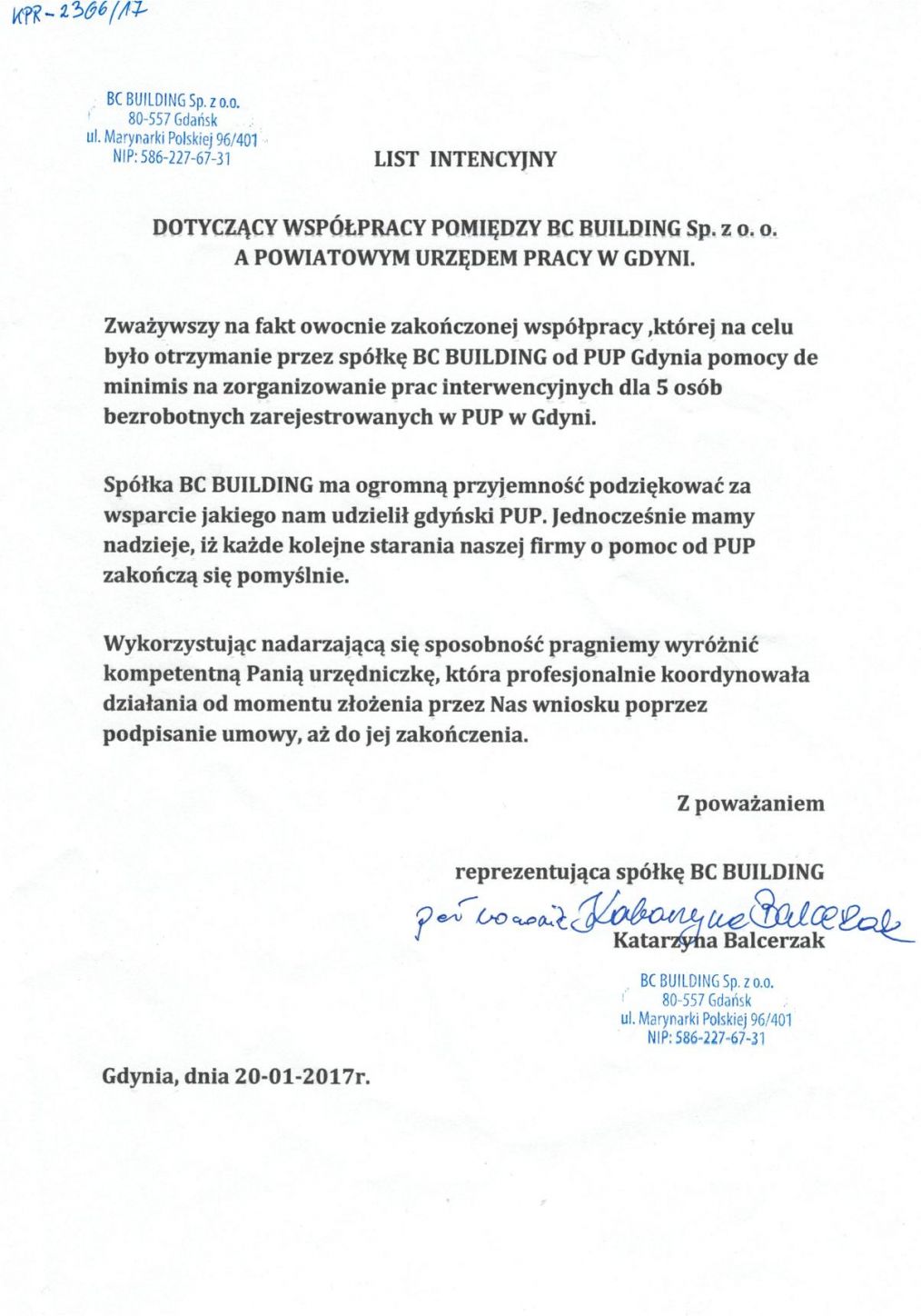 dotyczący współpracy pomiędzy HTC BUILDING Sp. z o.o. a Powiatowym Urzędem Pracy w Gdyni