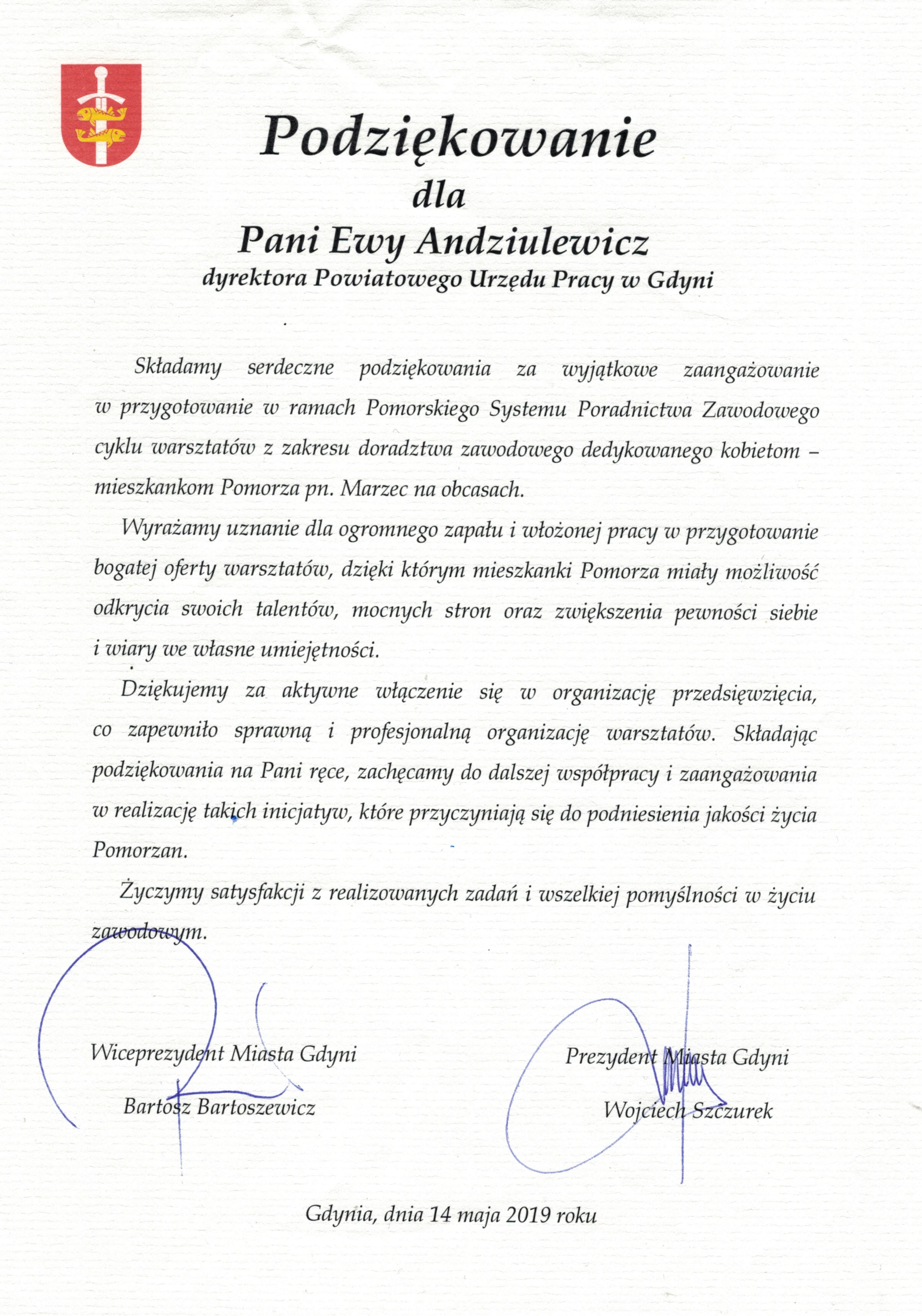 dla Pani Ewy Andziulewicz dyrektora Powiatowego Urzędu Pracy w Gdyni